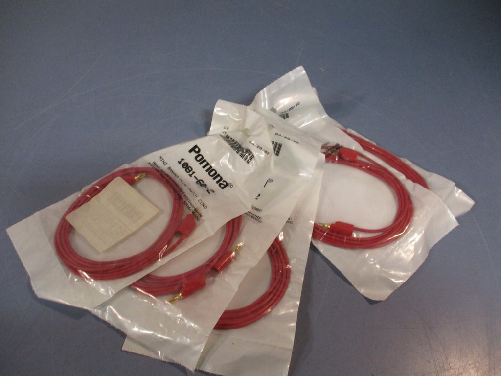 Lot of (5) Pomona Stackable Mini Banana Plug Patch Cord, Red Cable 1081-60-2