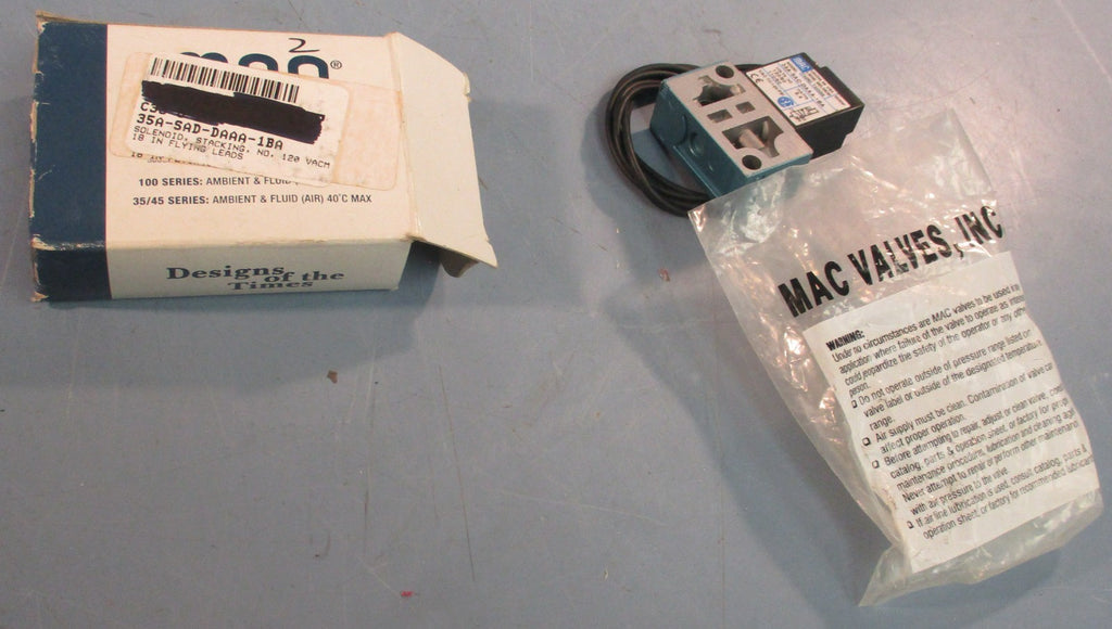 For sale is a Mac Valves 35A-SAC-DAAA-1BA Solenoid Valve 110-120V 50-60Hz 120 Psi 5.4 W. Item appears new and in excellent condition. Will come as shown and with what is pictured. May show minor imperfections but nothing that will impact performance.