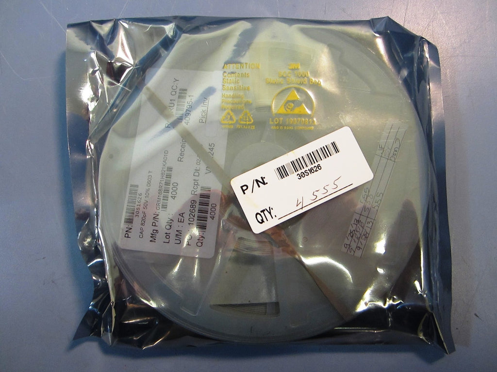 Ceramic Capacitors For sale are two reels containing a total of 4555 pieces of Murata Ceramic Capacitors, part #GRM188R71H821KA01D. Components are new, reels stored in anti-static packaging. Part #: GRM188R71H821KA01D