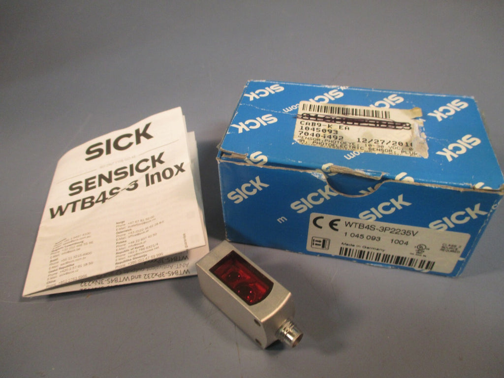 Sensor For sale is a SICK Photoeye Sensor 10-30 VDC WTB4S-3P2235V. The unit appears to be new and unused by the previous owner. The unit may show slight signs of cosmetic wear from the previous owner such as scratching, discoloration, shelf wear,...