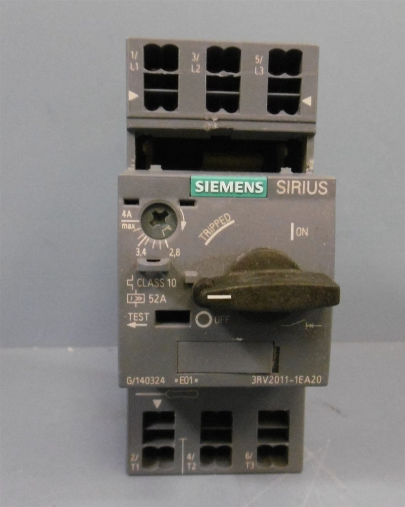 For sale is a Siemens Circuit Breaker 3RV2011-1EA20 G/140324 *E01*. The unit may show slight signs of cosmetic wear from the previous owner such as scratching, discoloration, shelf wear, paint chipping and/or other markings that should not impact the unit's performance. Overall the unit appears to be in very good ready to use condition. The unit includes everything shown in pictures.