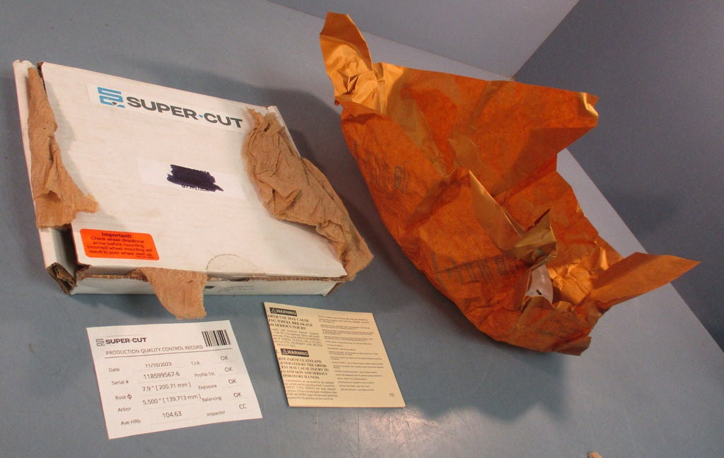Grinding Wheel For sale is a Super Cut 07958740194 Grinding Wheel Max 7600 RPM 5-1/2" ID 8" OD. Item appears new and in excellent condition. Will come as shown and with what is pictured. May show minor imperfections but nothing that will...