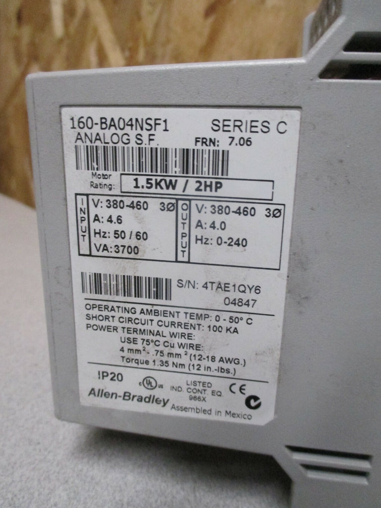 Allen-Bradley Speed Controller 1.5 KW/2HP FRN 7.06 Ser. C 160-BA04NSF1
